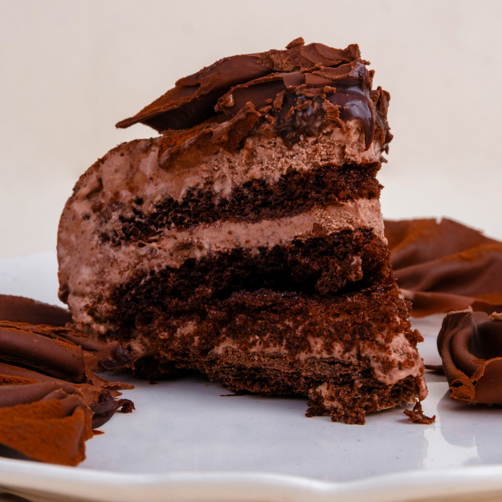 كيكة آيس كريم بالشوكولاتة المزدوجة بطعم لذيذ من بسكويت الشوكولاتة وآيس كريم الشوكولاتة المزدوجة والكيك بالشوكولاتة، تكفي من 4 إلى 6 أشخاص.
