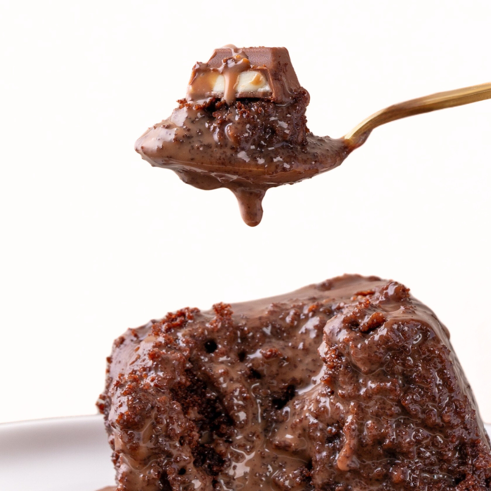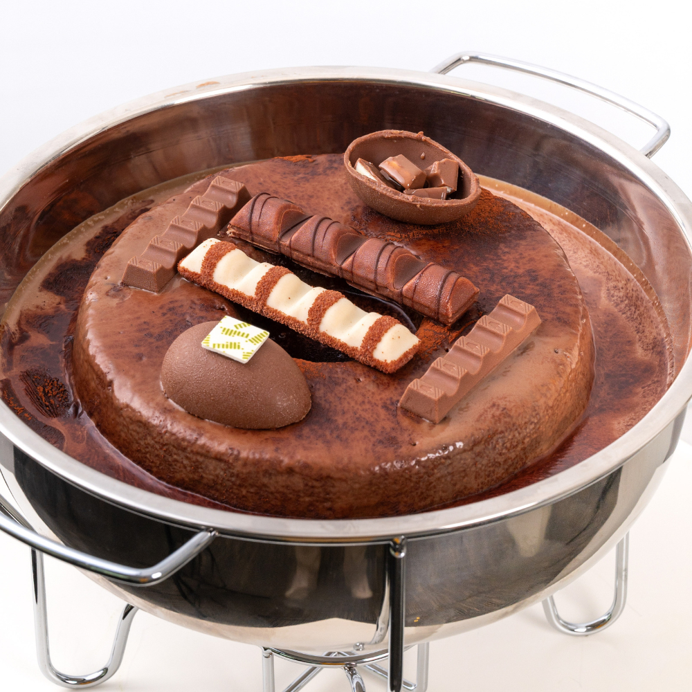 كيكة كيندر لافا مميزة بطبقات غنية مغطاة بصوص كيندر ناعم ومزينة بقطع شوكولاتة كيندر، تكفي من 10 إلى 14 شخص.