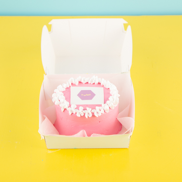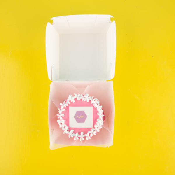 كيكة شوكولاتة صغيرة، مُصممة بورق سكر في الأعلى. يمكنك اختيار نكهة الريد فيلفيت أو الفانيليا برجاء ذكرها بتفاصيل إضافية.