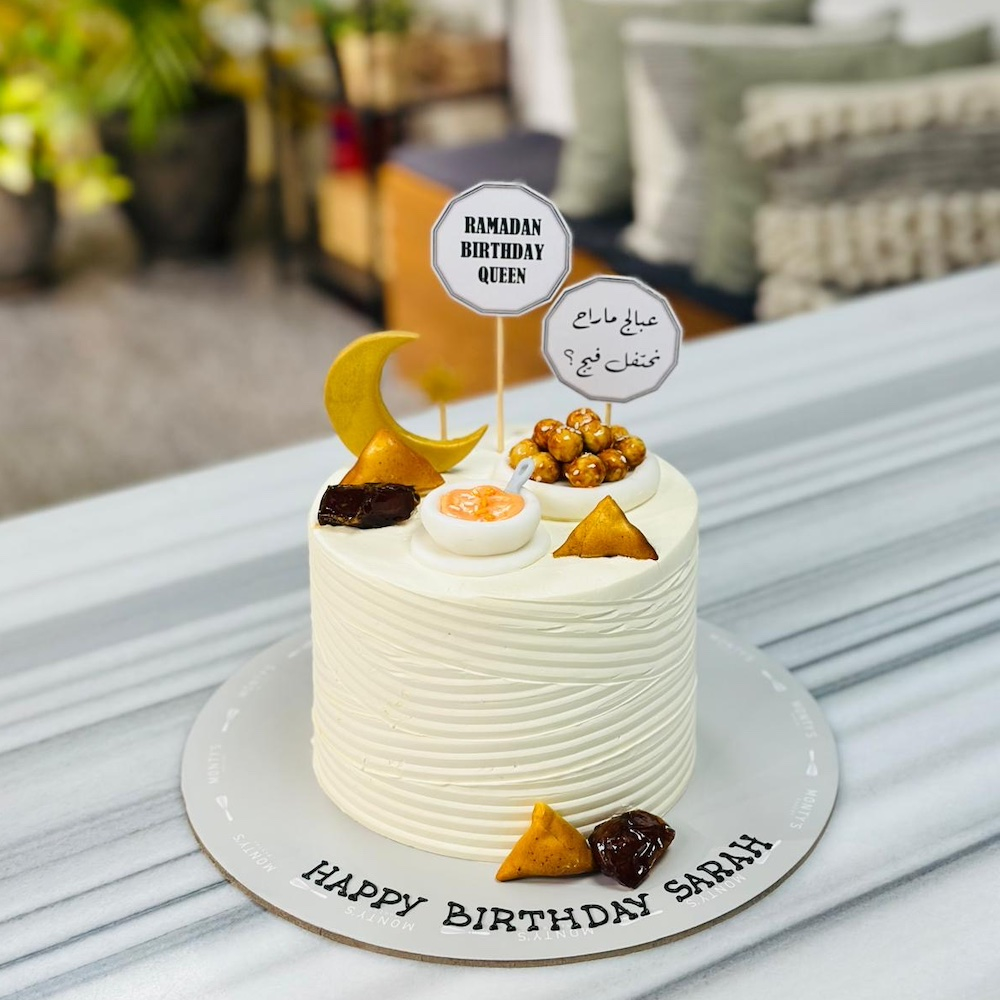 كيكة حجم 6 إنش بنكهة الشوكولاتة والفانيلا، مزينة بمناسبة رمضان.
