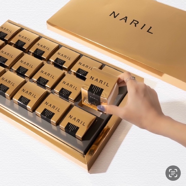 هذه الصينية تحتوي على 18 توزيعة من الشوكولاتة. كل علبة تحتوي على قطعتين من الشوكولاتة المغلفة.