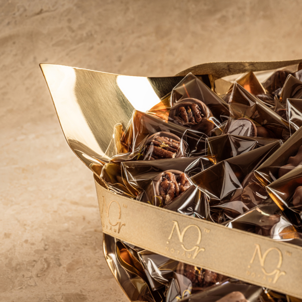 صينية كبيرة بتصميم نحتي، تحتوي على 3 كيلو من الشوكولاتة المغلفة فرديا من افضل التشكيلات الاكثر مبيعا، مناسبة للهدايا المميزة والضيافة الراقية.