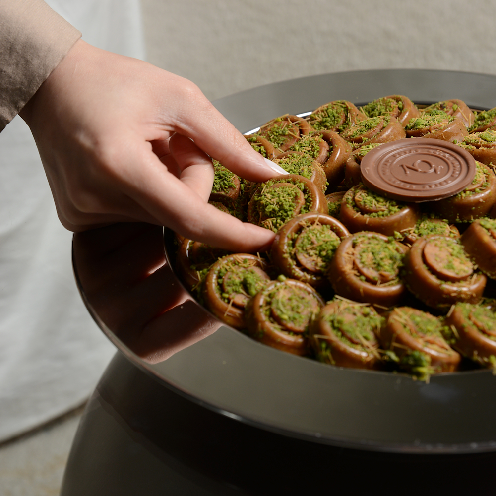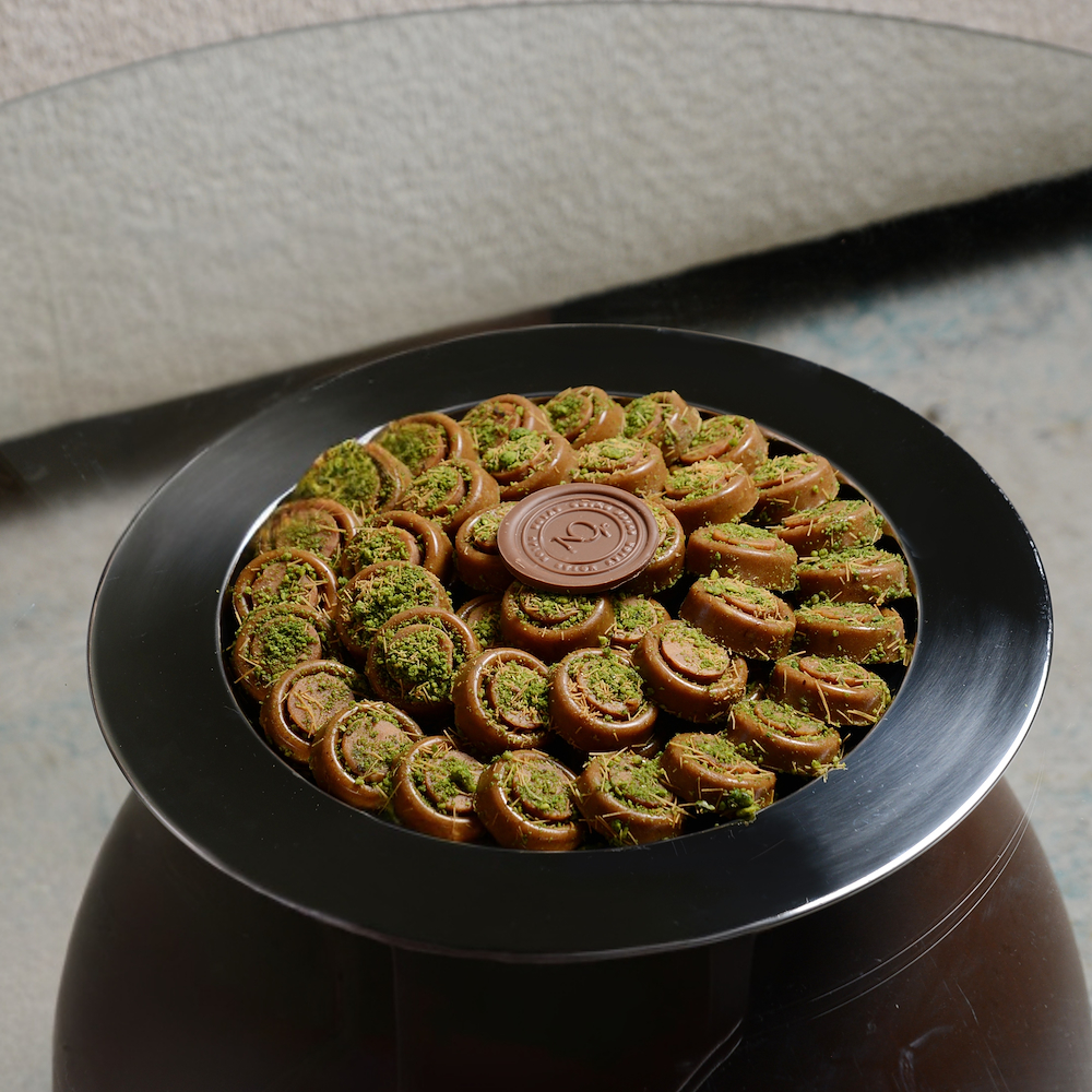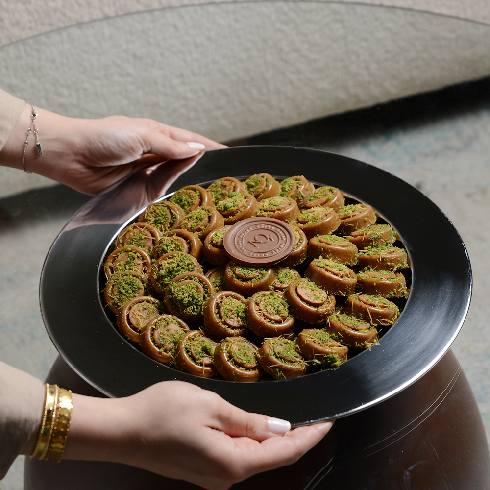 صينية رنجينة مقدّمة بأسلوب أنيق، بكمية 850 غرام.