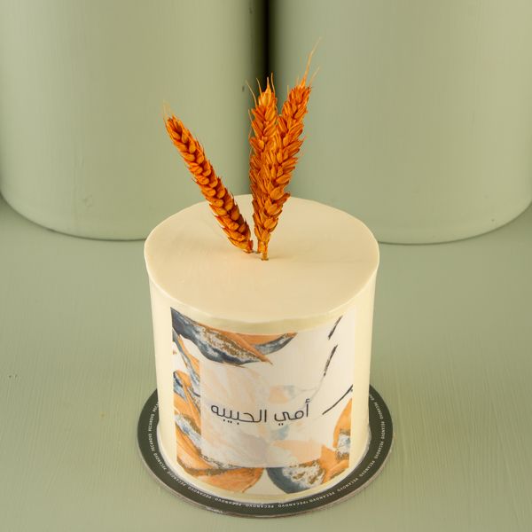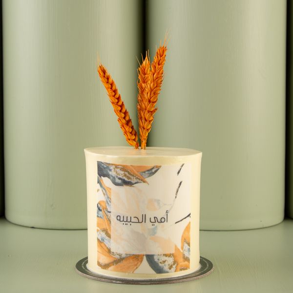 كيكة بيكانوفو صغيرة بالفانيلا مزينة بالزهور المجففة وورقة السكر.