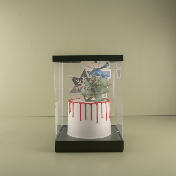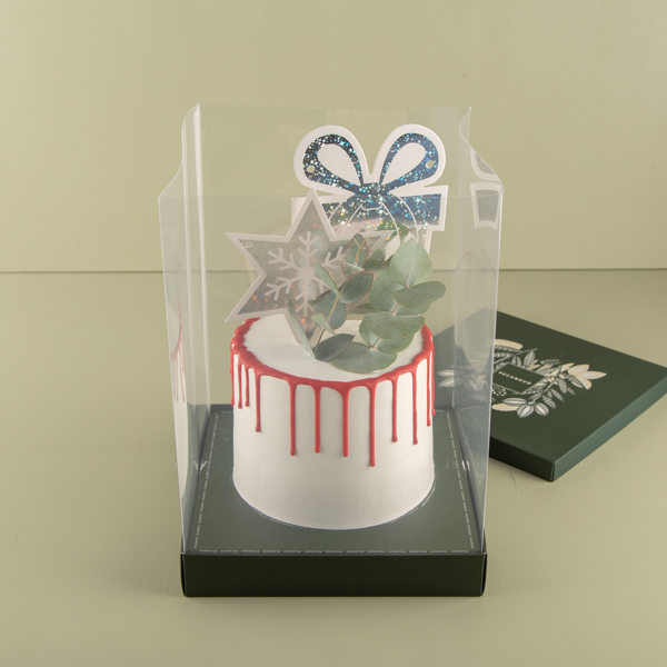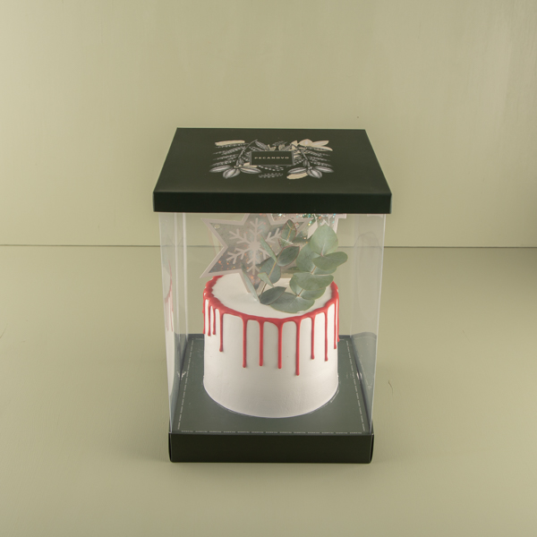 هذه كيكة الكريمة الناعمة مزينة بالأوكالبتوس وتوبر غير صالح للأكل ليوم الميلاد.