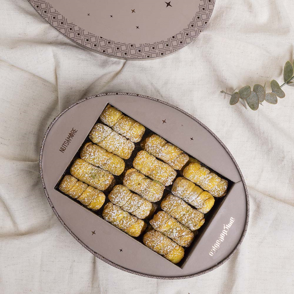 علبة تحتوي على 30 قطعة من دملوج الجوز، مثالية لجمعات رمضان.