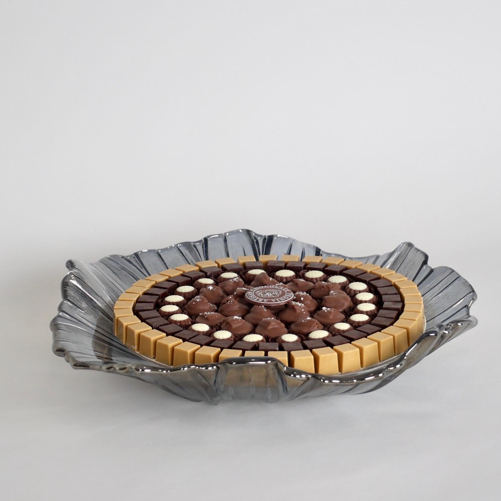 صينية كرستال تحتوي على 980غ مزيج الشوكولاتة بحشوات مختارة (110 قطع تقريبا).