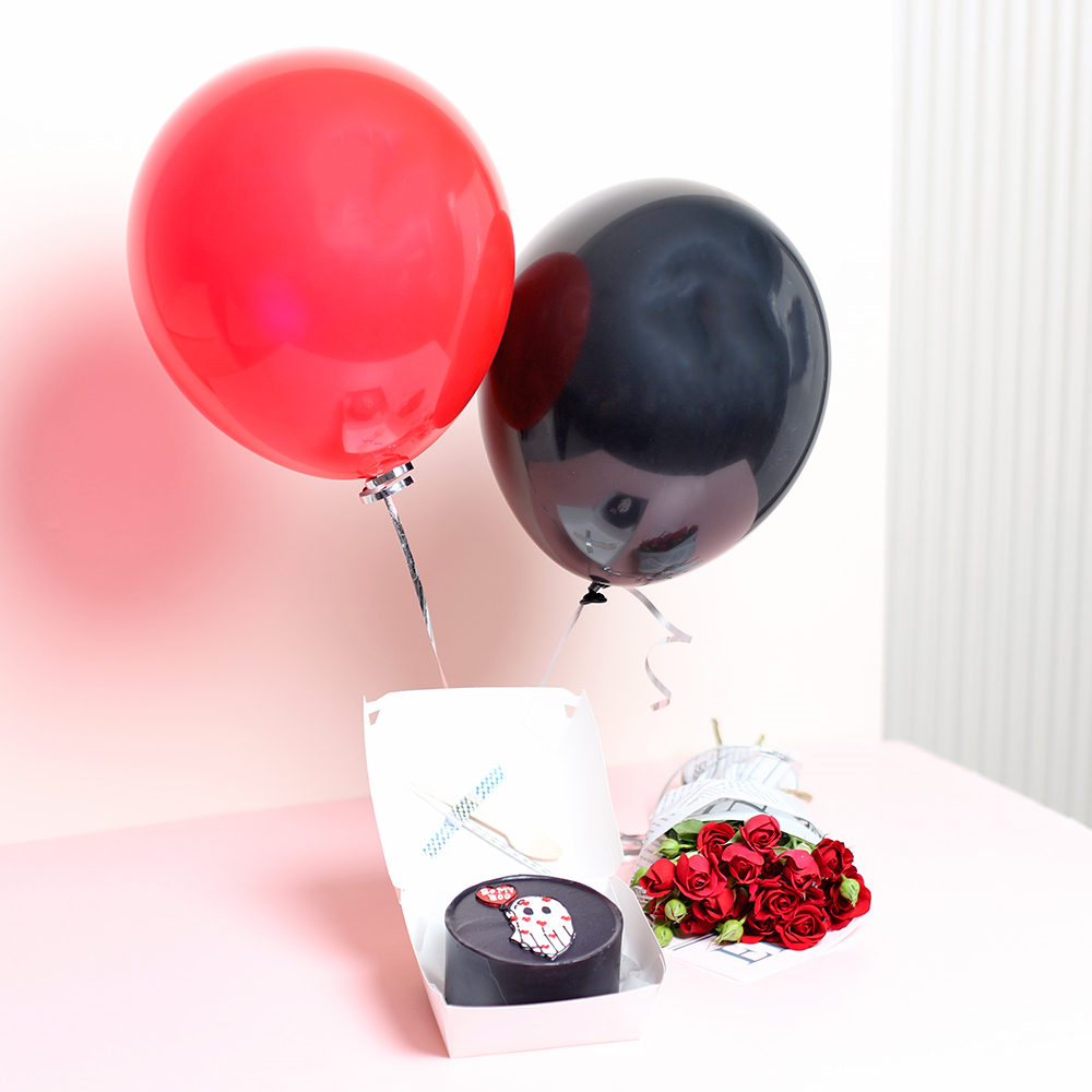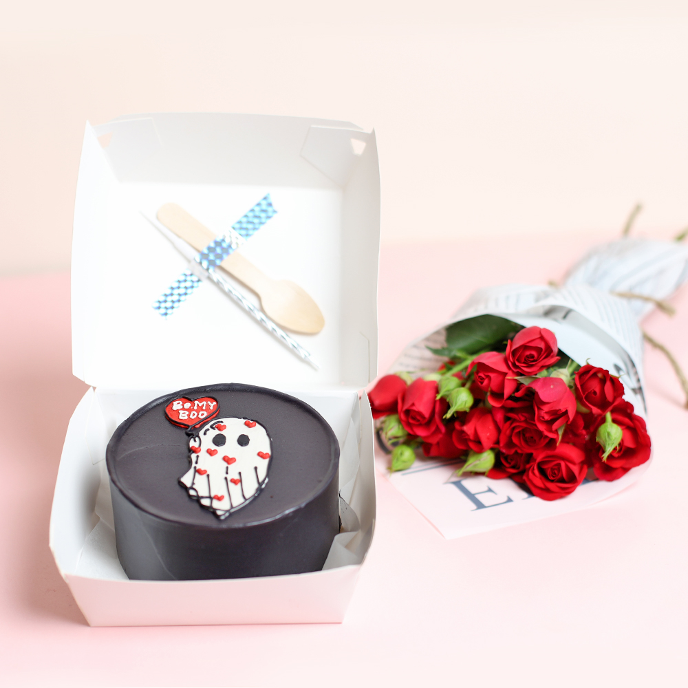 كيكة بنتو مقاس 4 إنش لشخصين مع زهور وملعقة وشمعة وبالونين.