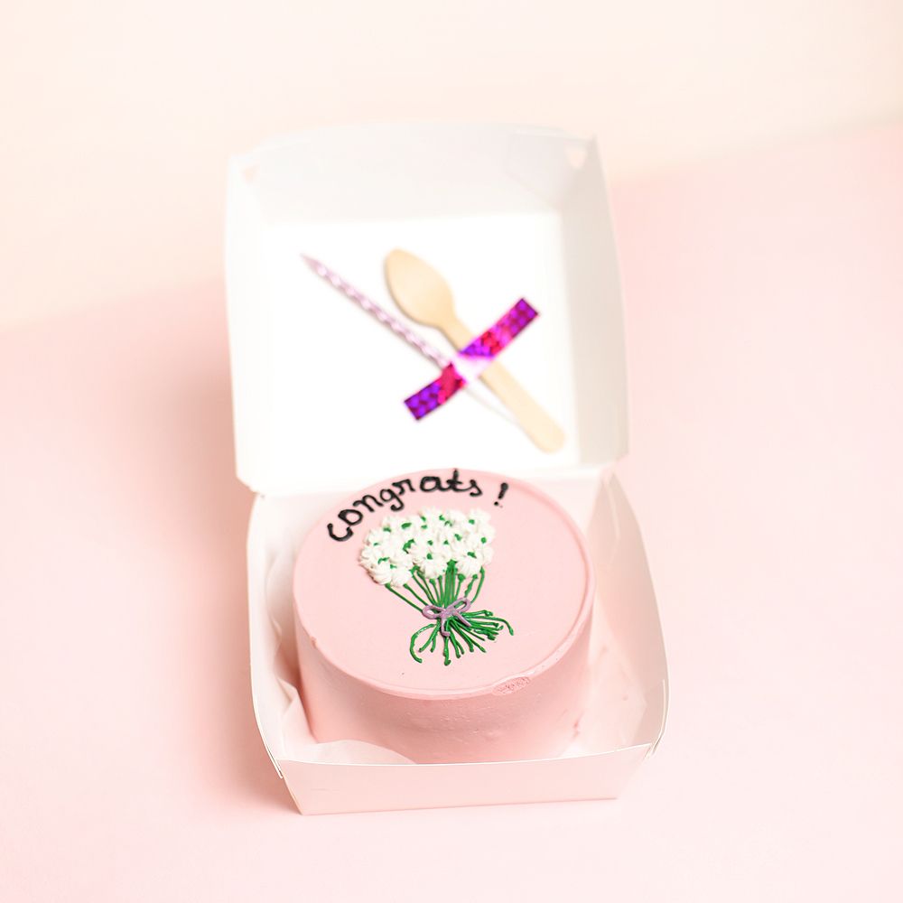 كيك صندوق الغداء، مقاس 4 انش، تكفي 2، مع شمعه وملعقة.