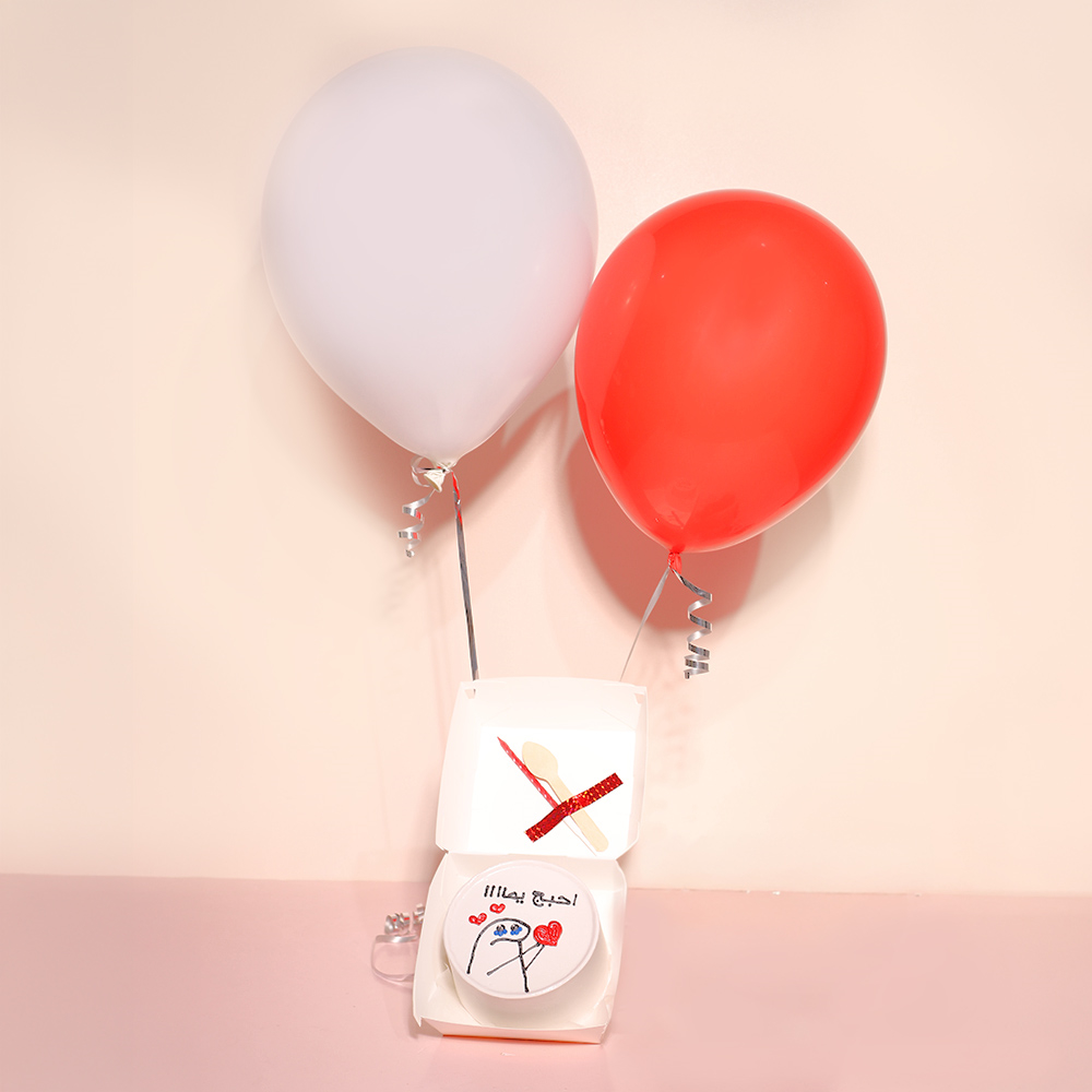 كيكة بحجم 4 إنش تكفي شخصين، تأتي مع بالونتين، شمعة وملعقة.