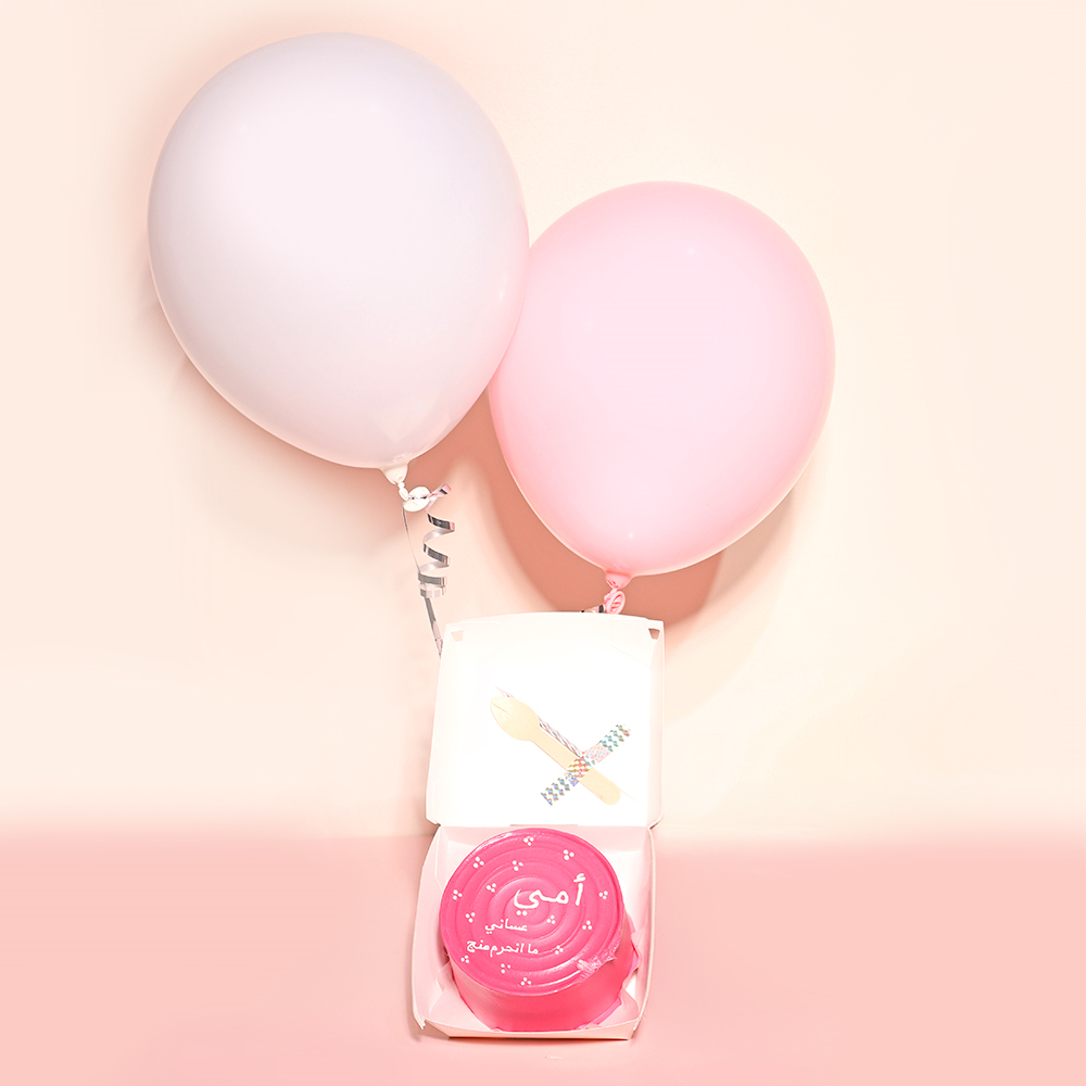 كيكة بحجم 4 إنش تكفي شخصين، تأتي مع بالونتين، شمعة وملعقة.
