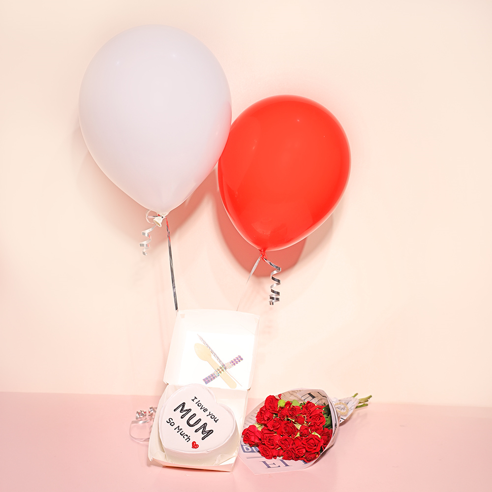 كيكة بينتو بحجم 4 انش تكفي لشخصين وتأتي مع ملعقة، شمعة، بالونتين من الهيليوم وباقة أزهار صغيرة.
