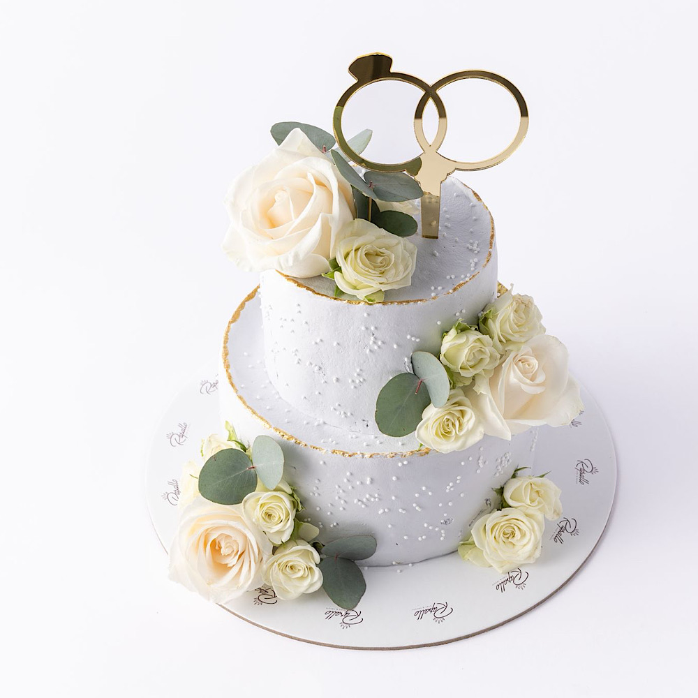 كيكة أنيقة من طبقتين، مثالية ليومكم المميز. تكفي من 12 إلى 15 شخص، وتتميز بمزيج لذيذ من نكهات الفانيلا والشوكولاتة.