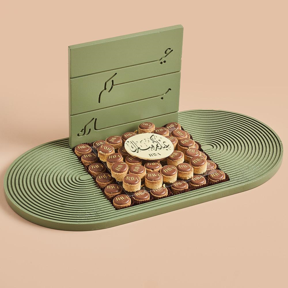 صينية خشبية أنيقة مليئة بالغريبه المختارة الفاخرة.