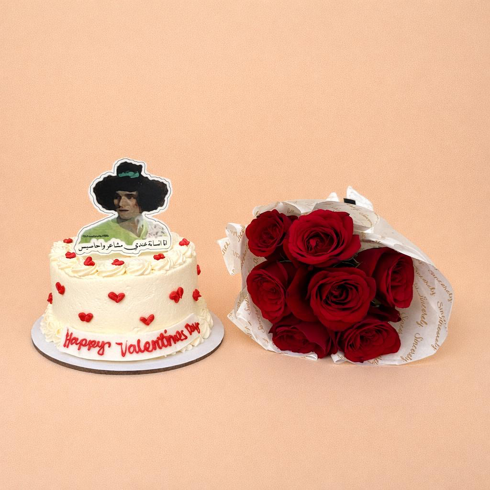 كيكة الشوكولاتة بحجم 6 انش مع باقة زهور.