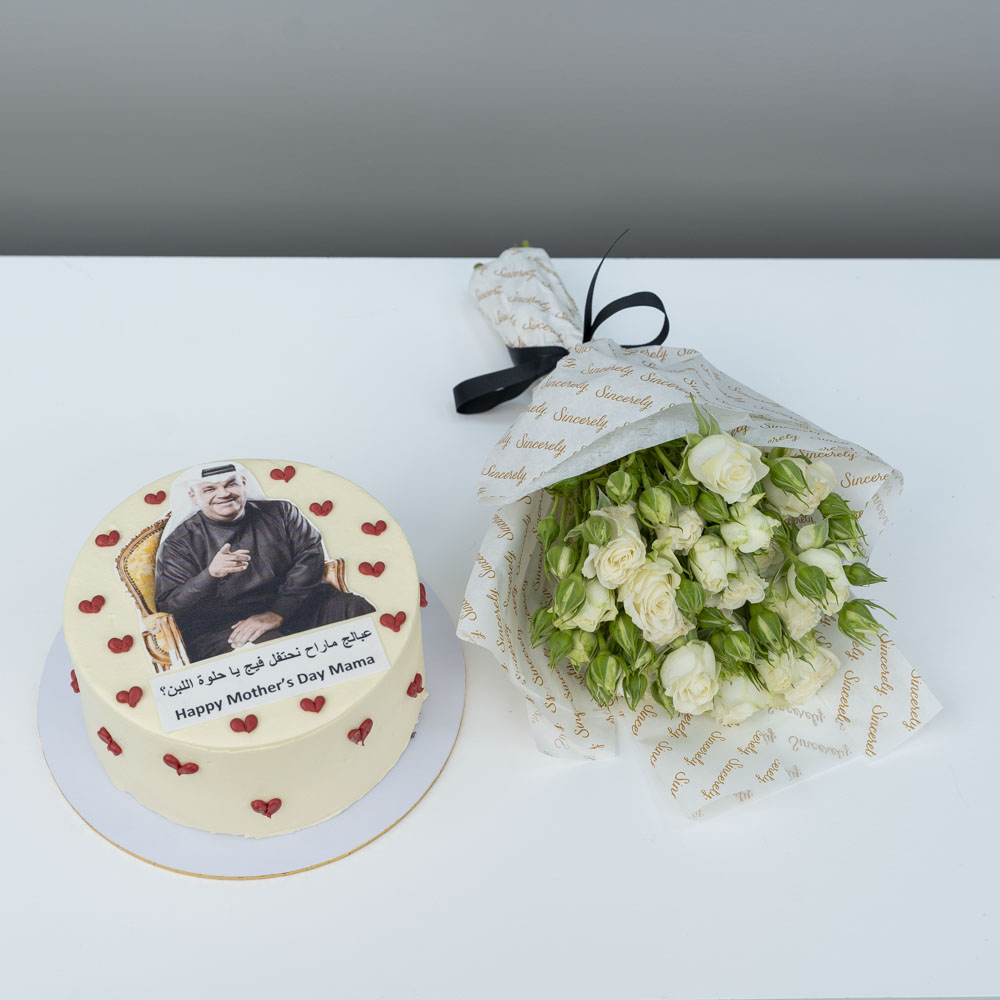 كيكة بحجم 6 إنش، تقدم في لوح. تأتي مع باقة من زهور البيبي جوري.