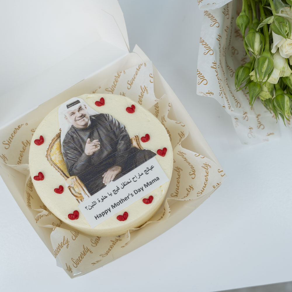 كيكة بحجم 4 إنش، تقدم في علبة كرتون. تأتي مع باقة من زهور البيبي جوري.