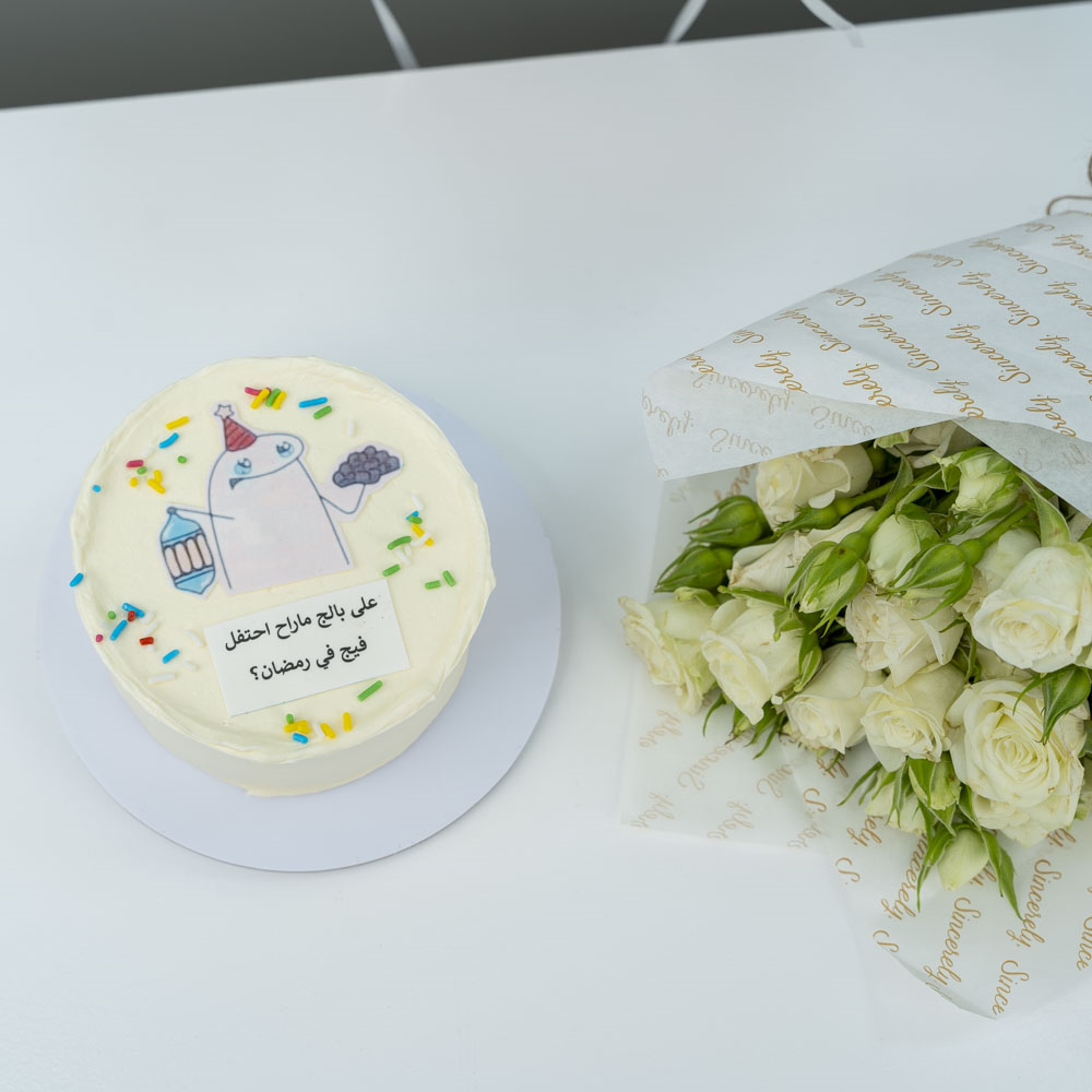 كيكة بحجم 4 إنش تكفي شخصين مصممة بشكل جميل، مثالية للإحتفال بيوم ميلاد من يعز عليك. نكهات الكيكة هي الشوكولاتة، الرد فيلفت أو الفانيلا. تأتي مع بالونتين وباقة صغيرة من البيبي جوري.