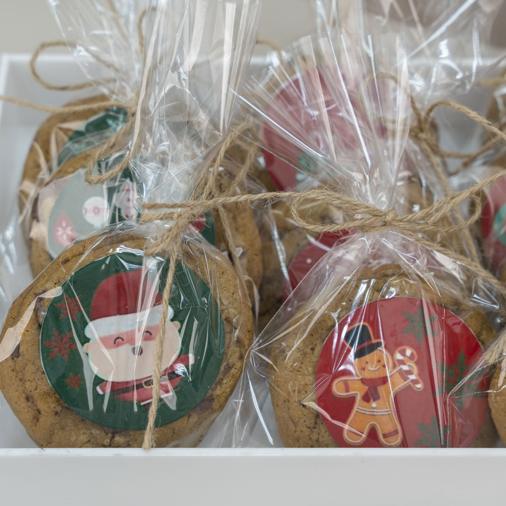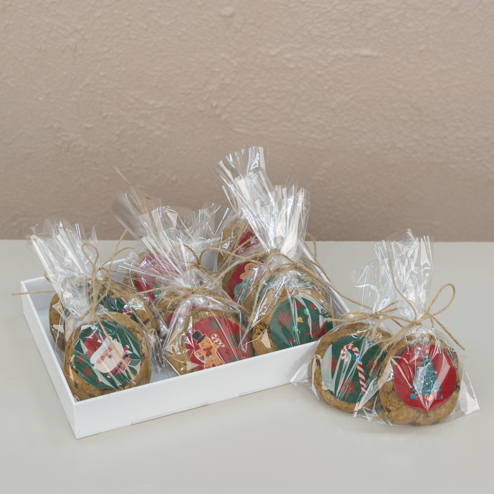 12 قطعة من كعكات رقائق الشوكولاتة كهدايا في صينية أكريليك.