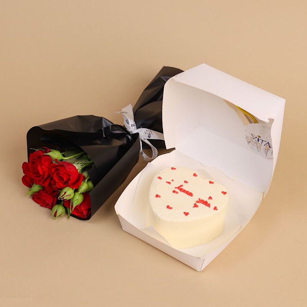 كيكة بينتو ميني بنكهة الفانيلا مع باقة ميني من أزهار البيبي روز.