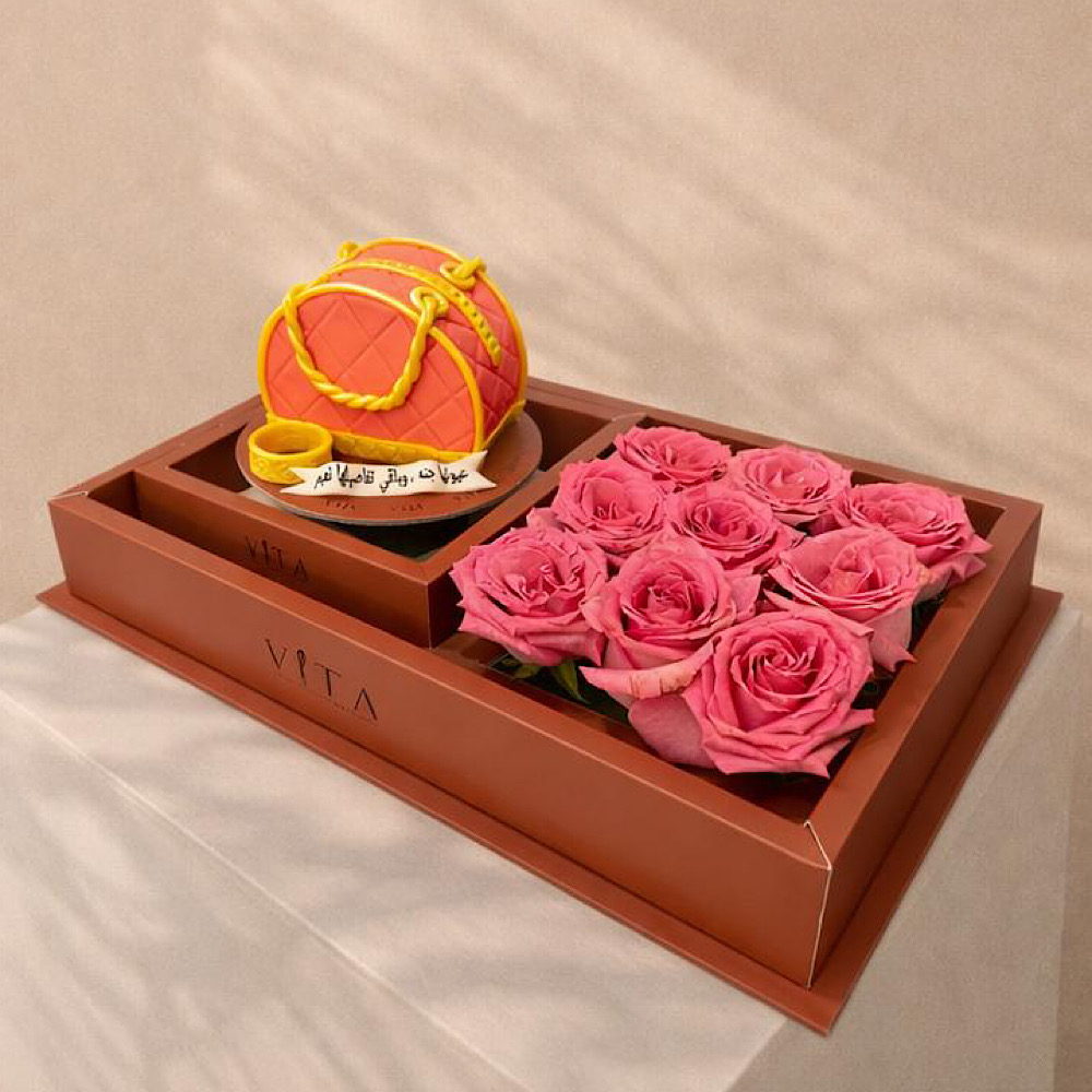 كيكة يوم الام بنكهة الفانيلا على شكل شنطة.