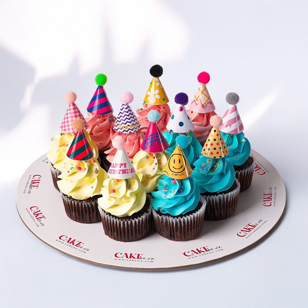 مجموعة من 12 قطعة كب كيك مرحة ومليئة بالألوان، مزينة بكريمة دوارة زاهية وقبعات حفلات متنوعة تضيف طابع إحتفالي واضح. كل قطعة مصممة بشكل مختلف لتخلق شكل جماعي حيوي ومبهج، مثالية لأعياد الميلاد والاحتفالات غير الرسمية. النكهة: الشوكولاتة أو الفانيلا (حسب الطلب). مناسبة لأعياد الميلاد، حفلات الأطفال والتجمعات الخفيفة.