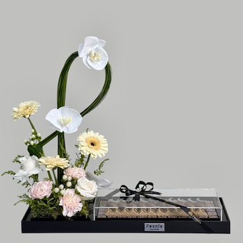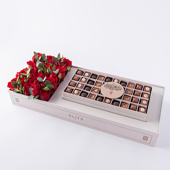صندوق شوكولاتة مع زهور