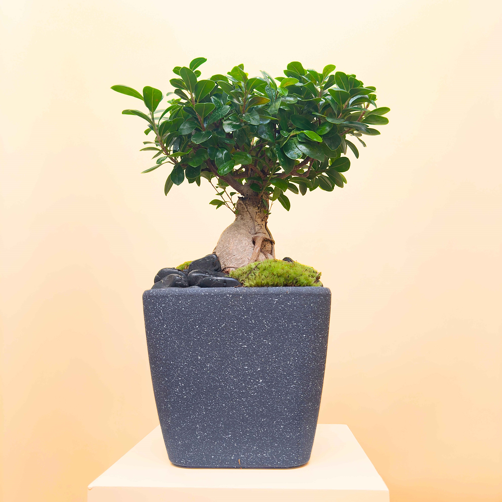 وعاء من الألياف المربعة يحتوي على نبات فيكوس جينسينج.