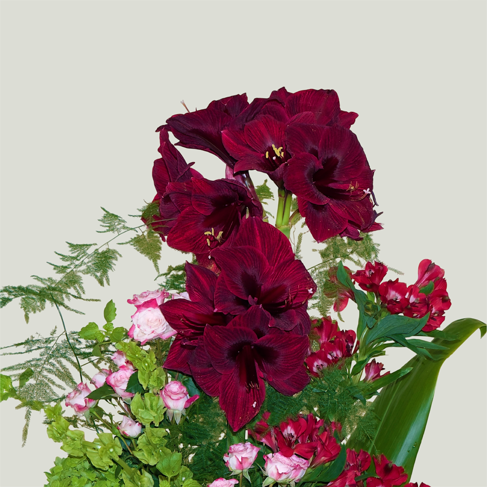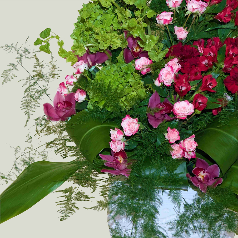 فازة تحتوي على الجوري، الكارنيشن، الالستروميريا والسمبيديوم.