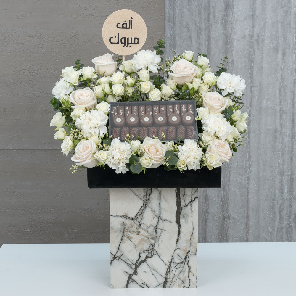 هذه الباقة تحتوي على الكريزنتم مع الشوكولاتة.