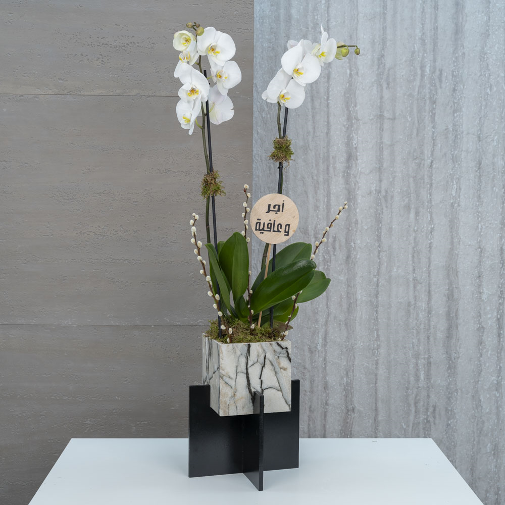 هذه الباقة تحتوي على نبتة الاوركيد.