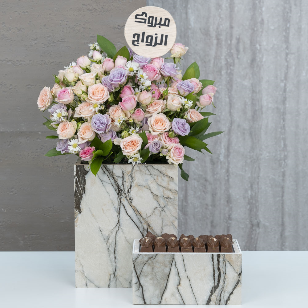 هذه الباقة تحتوي على البيبي جوري مع الشوكولاتة.