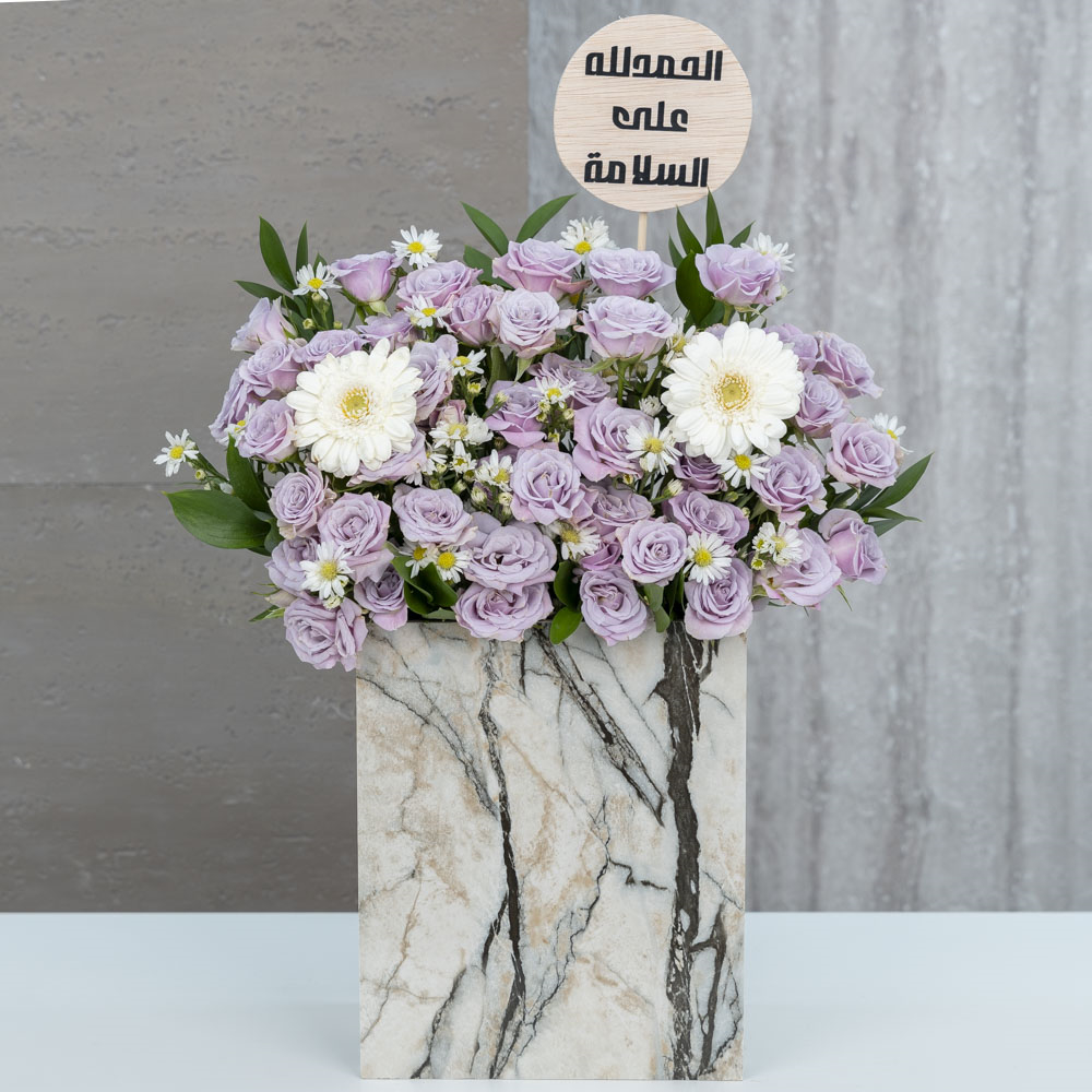 هذه الباقة تحتوي على البيبي جوري والجيربيرا.