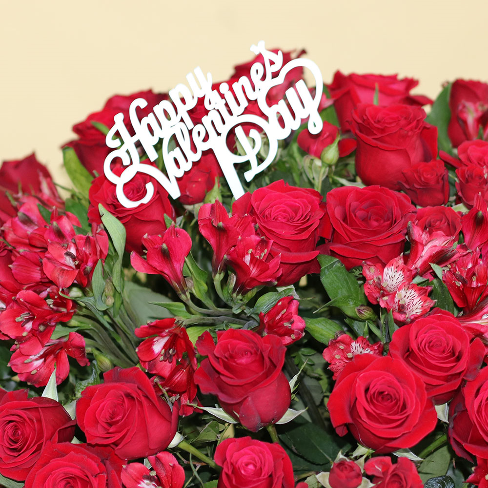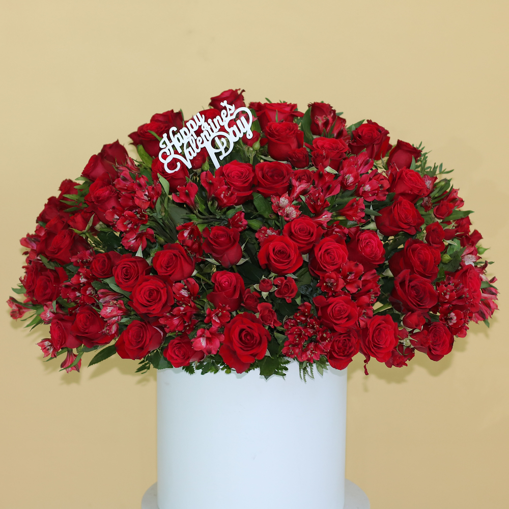 فازة تحتوي على الجوري والالستروميريا.