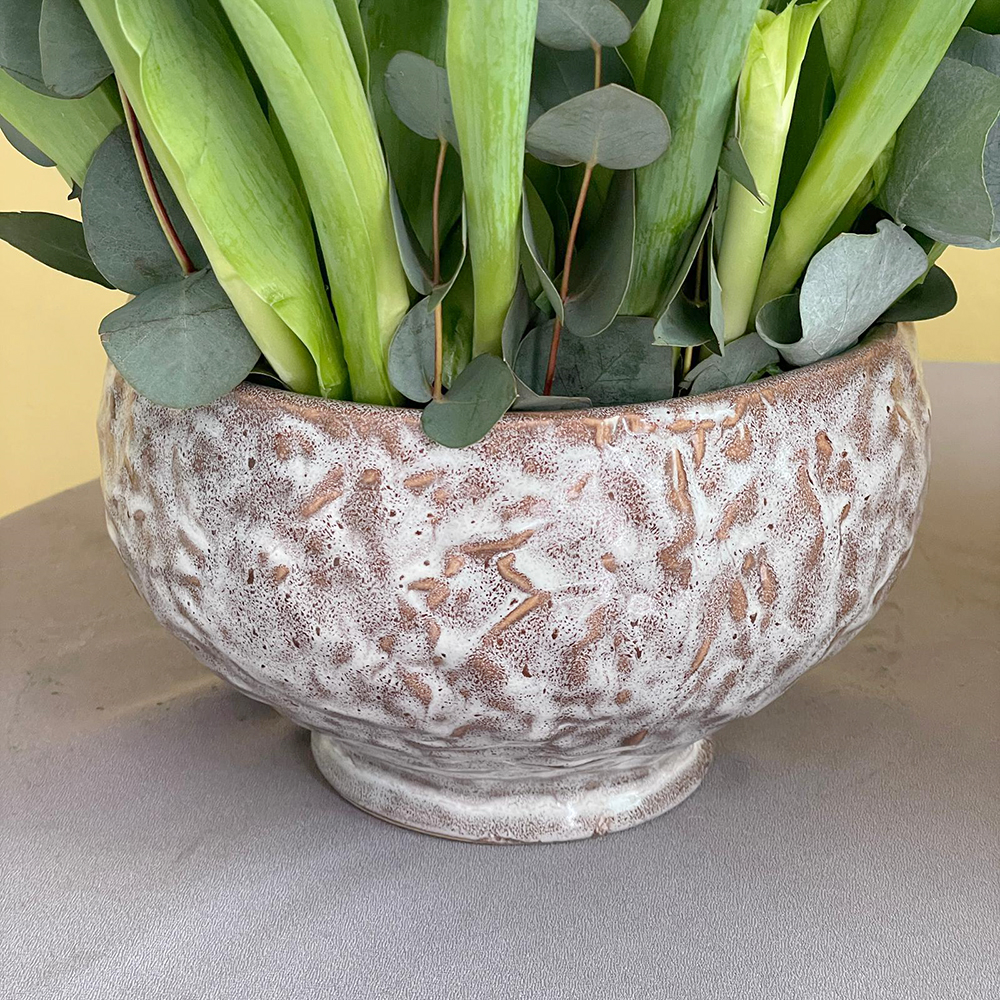 طقم مكون من فازتين مملوءتين بتوليب أبيض.