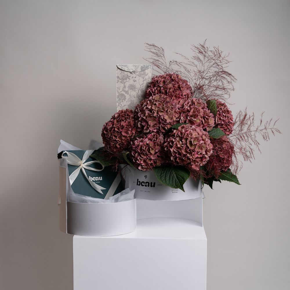 هامبر فاخرة مليئة بأزهار الكوبية، مع شوكولاتة بيمونت بإبداع الشيف منيرة الهبيش.
