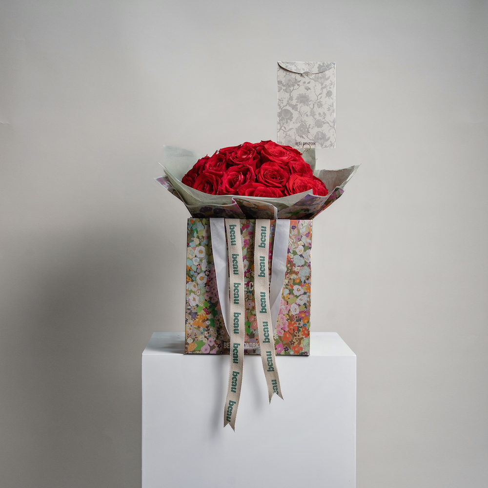 باقة فاخرة مليئة بأزهار الجوري باللون الأحمر.