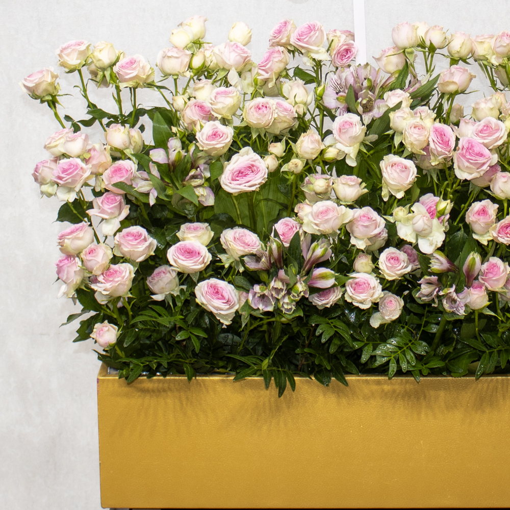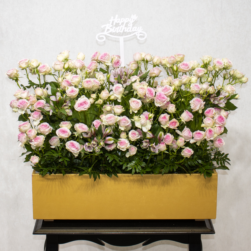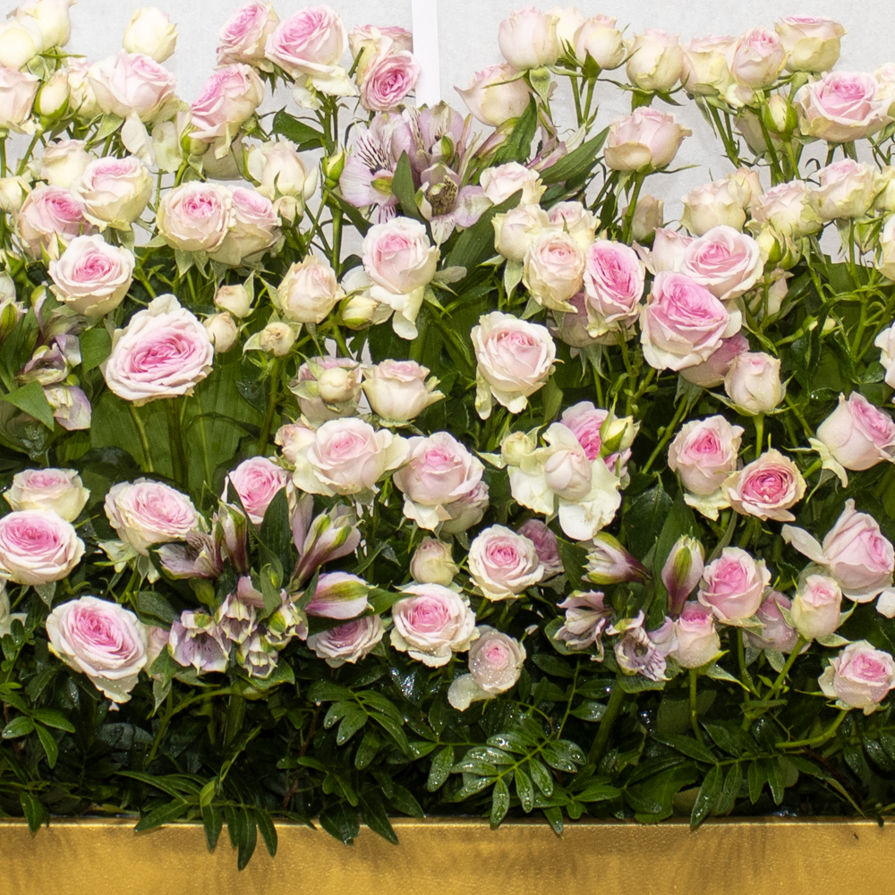 تحتوي هذه الباقة على بيبي جوري وردية اللون وزهور ألستروميريا مرتبة بشكل جميل في فازة.