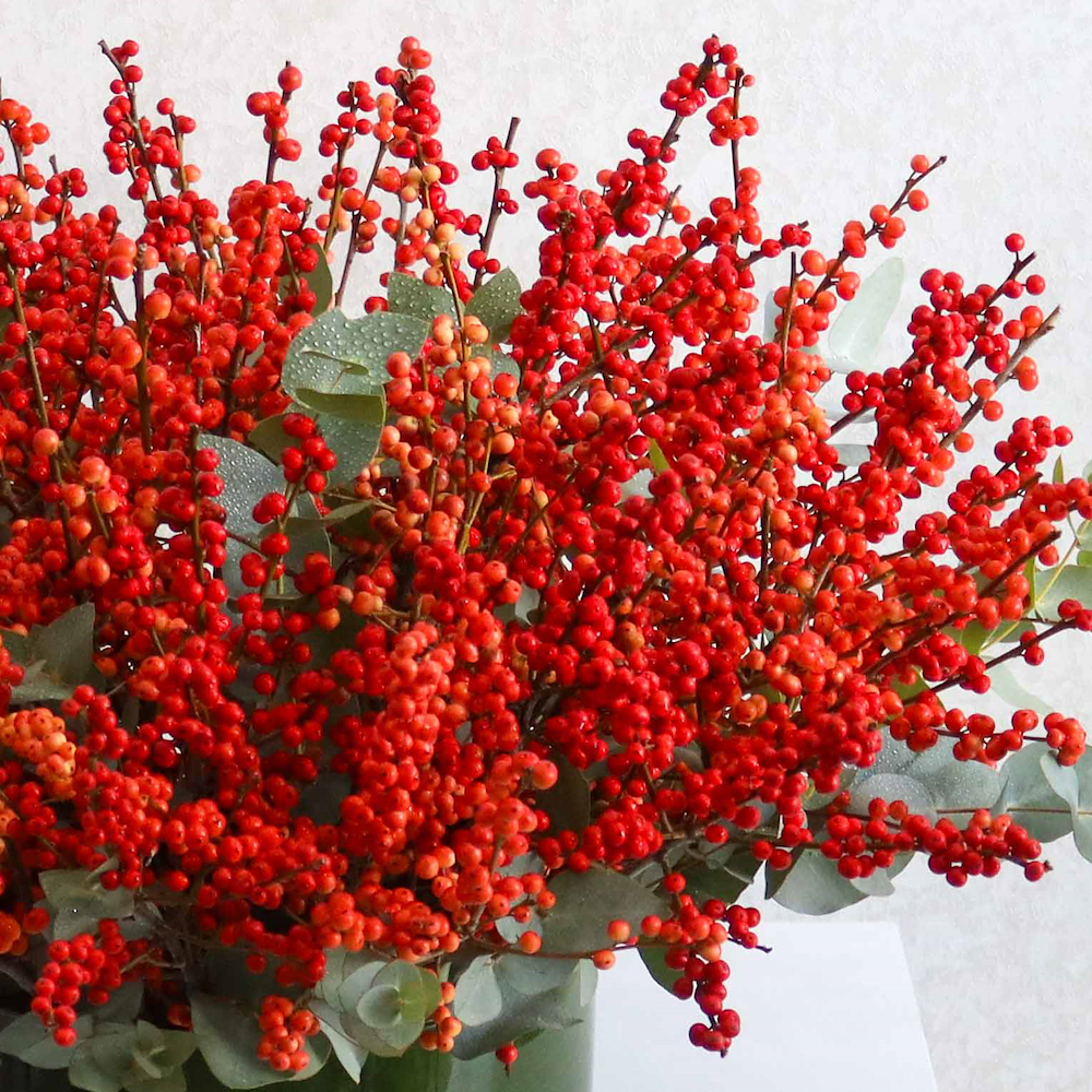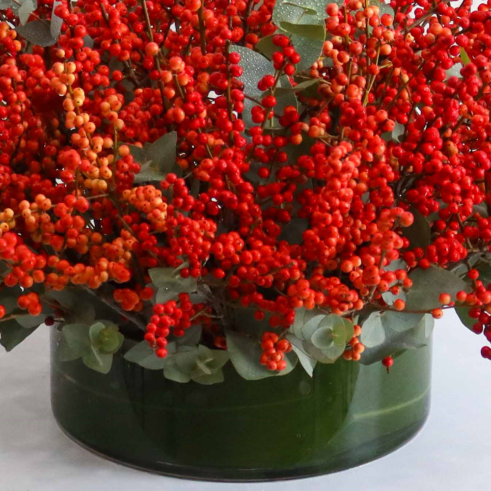 تحتوي هذه الفازة الزجاجية على خشب البلوط الأحمر والبرتقالي المرتب بشكل جميل.