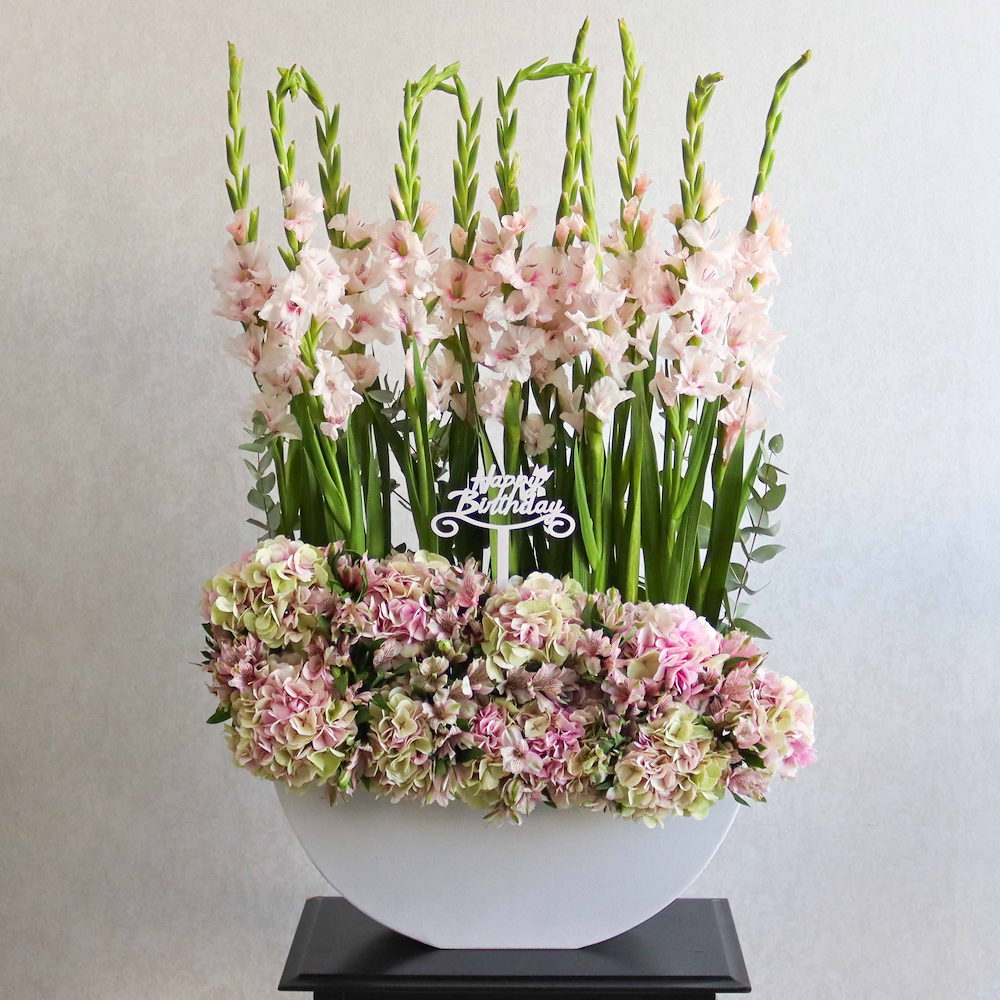 تحتوي هذه الباقة على نبات الأوركيد الأرجواني وزهور الجبسوفيلا.