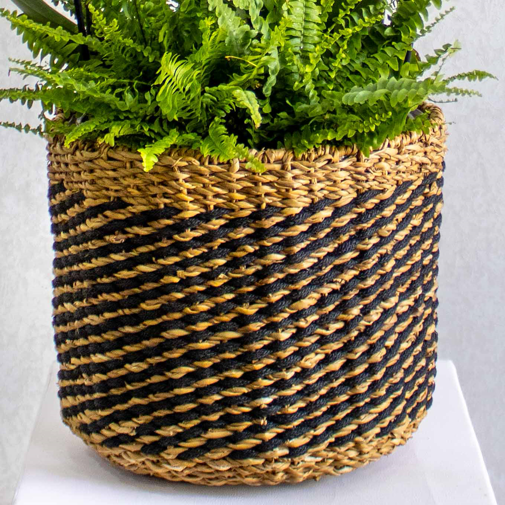 تحتوي هذه الباقة على نباتات الأوركيد البيضاء ونبات السرخس البوسطني في فازة مصنوعة يدوياً.