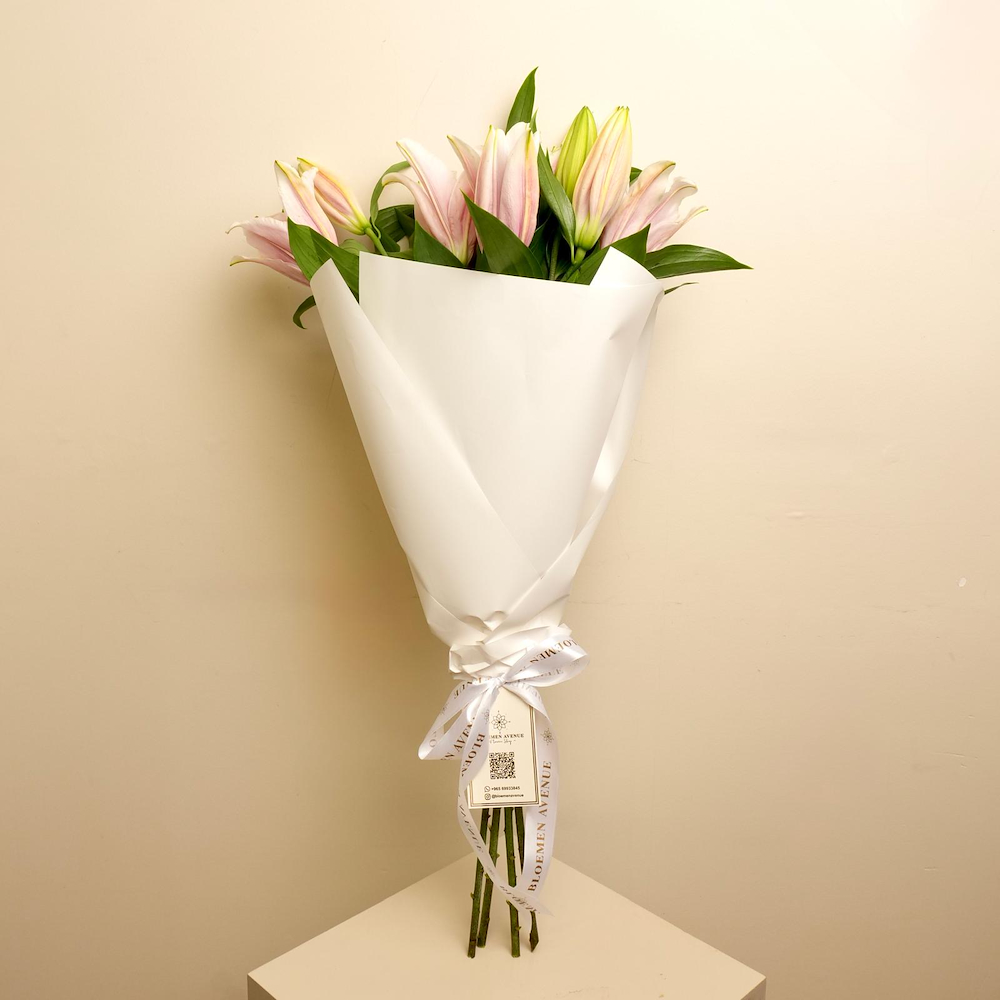 صندوق خشبي يحتوي على زهور الجوري، البيبي جوري، الكارنيشن والجيربرا.