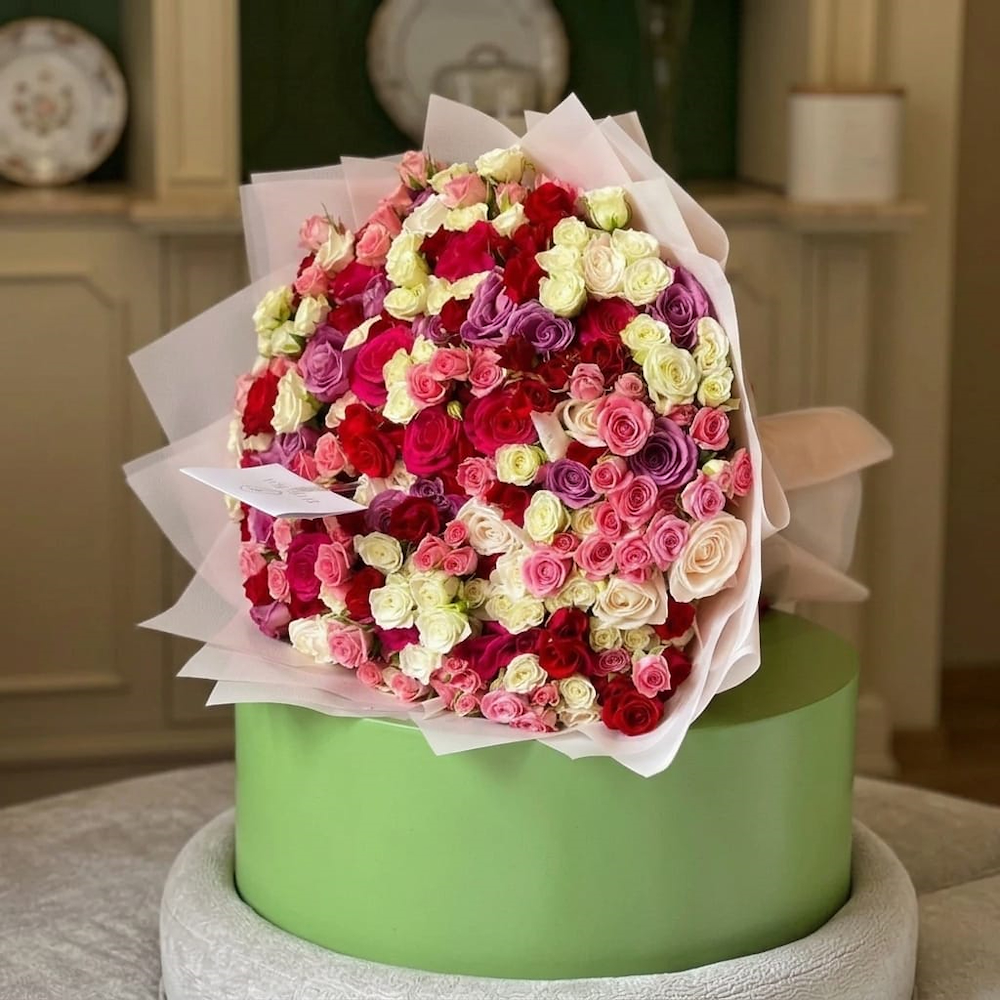 ستاند يحتوي الجوري، الجيربيرا والكارنيشن.