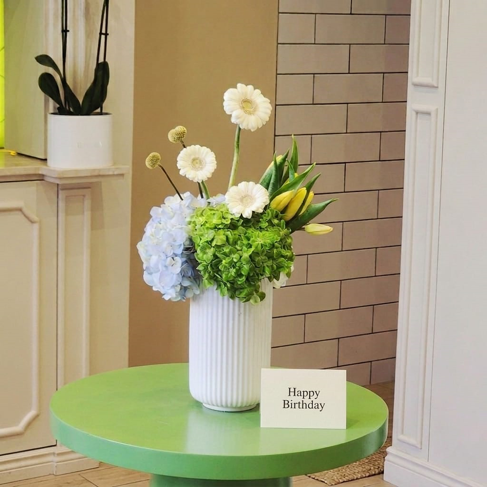 صندوق يحتوي على 40 من أغصان الكارنيشن باللون الوردي، 5 من أغصان البيبي روز البيضاء، و 4 من أزهار الجربيرا، بتصميم جميل بداخل صندوق مستدير، يأتي مع حقيبة أنيقة.