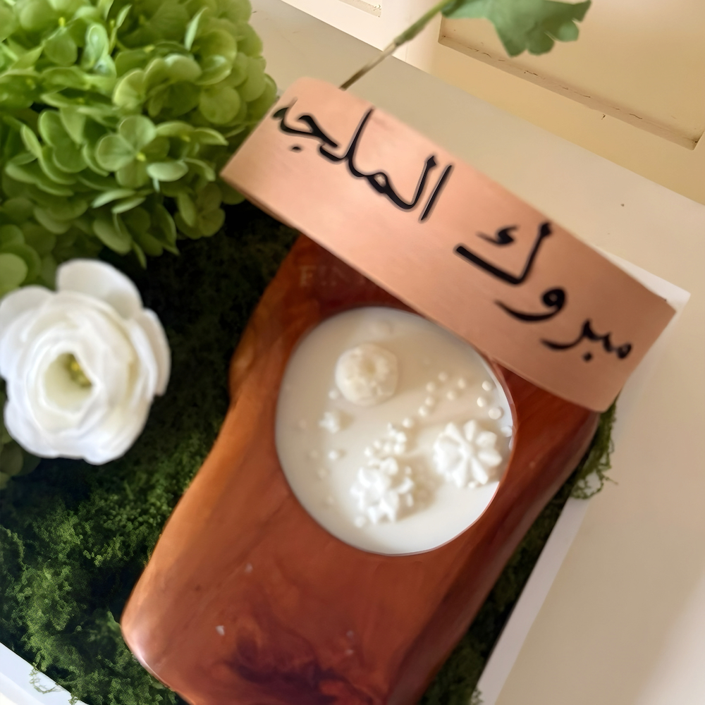 صينية تحتوي على الزهور الصناعية مع شمعة.