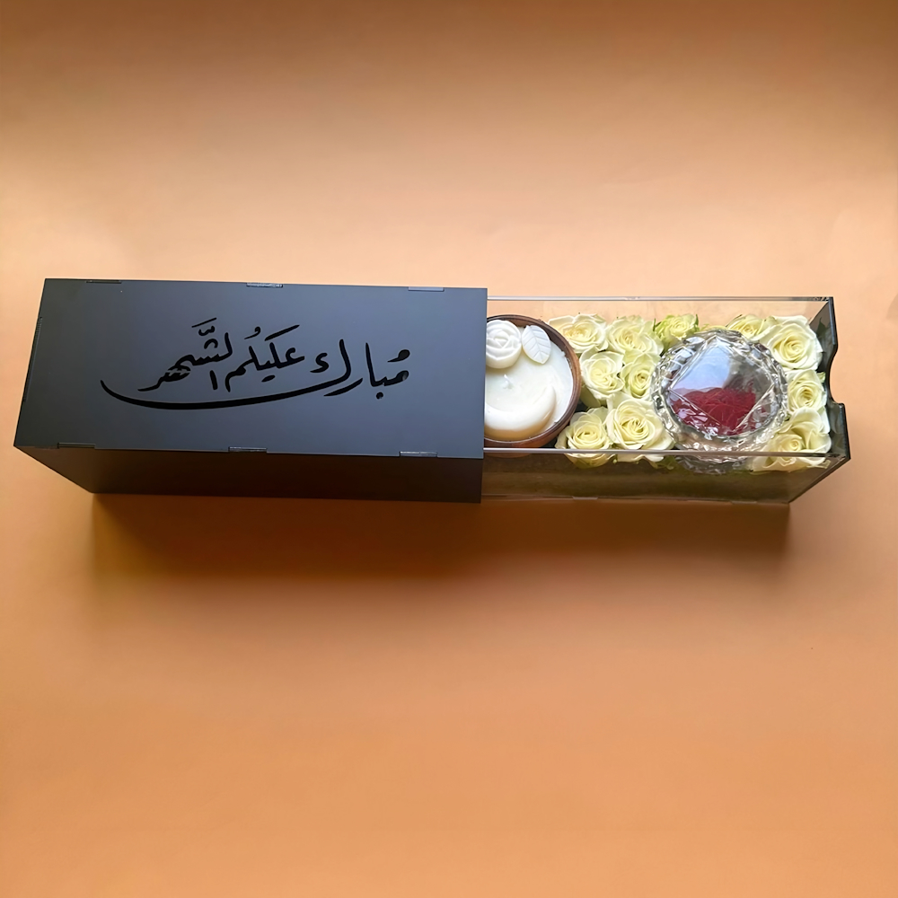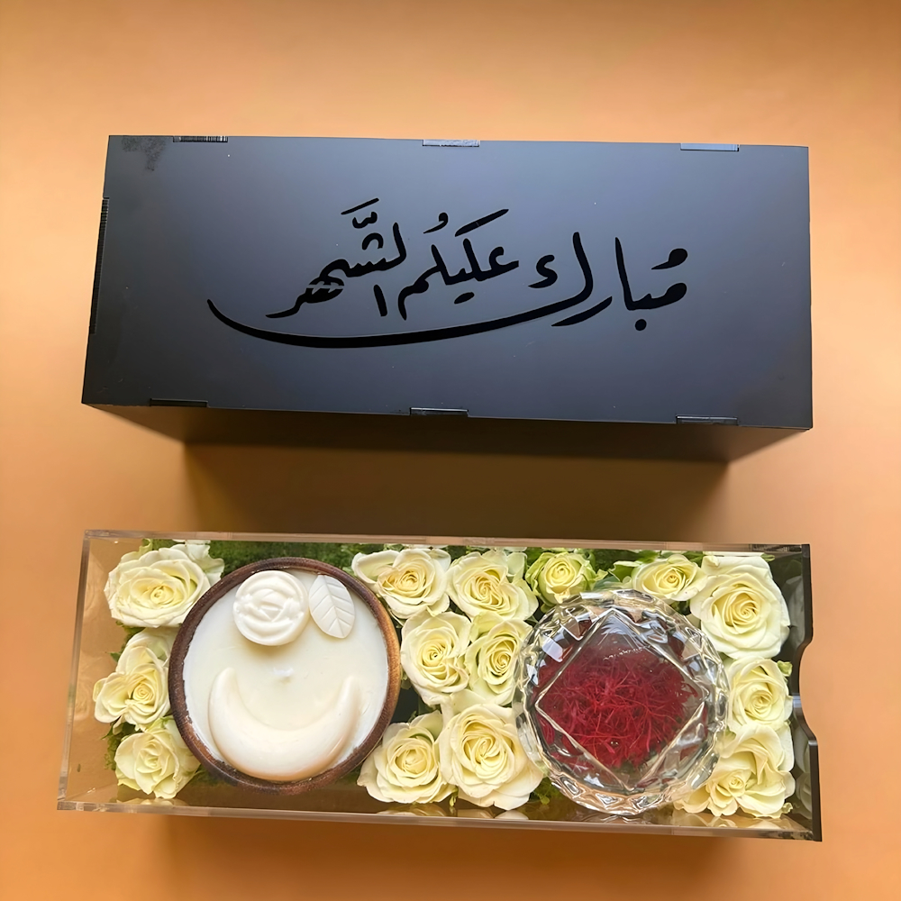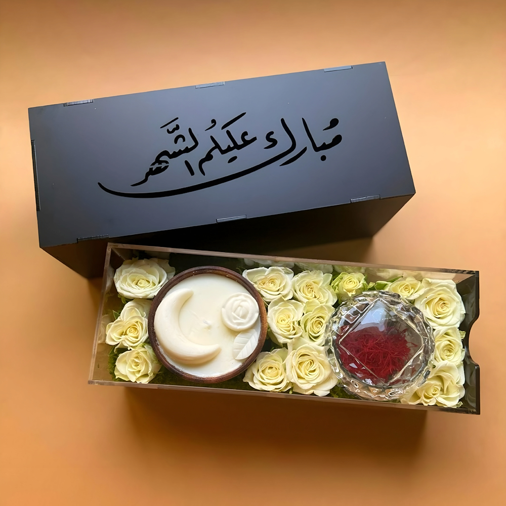 بوكس يحتوي على البيبي روز مع شمعة و زعفران.