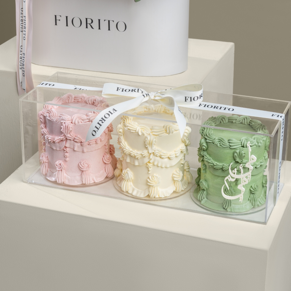 صندوق يجمع بين مزيج ملون من زهور الجوري، البيبي جوري، الكريز، التوليب، الجيربيرا الكارنيشن، والبروتيا، مع مجموعة من 3 كيكات صغيرة كلاسيكية وتغريسة يوم الأم. مزيج مبهج من الزهور الطازجة والحلويات الفاخرة مصمم لمشاركة لحظات عائلية سعيدة.