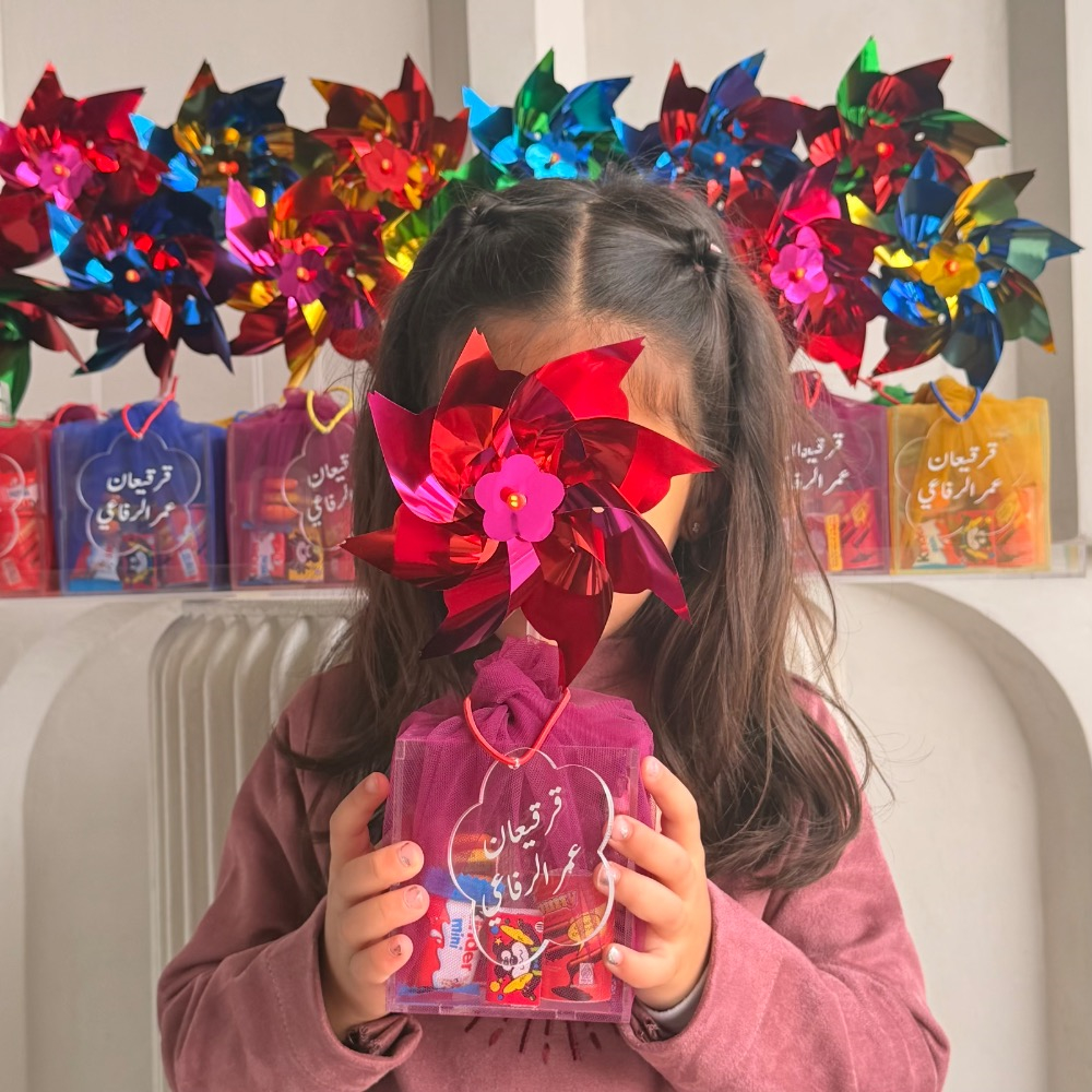 علبة قرقيعان قابلة للتخصيص تحتوي على 13 علبة بحاخلها الشوكولاتة، الحلوى والمكسرات.