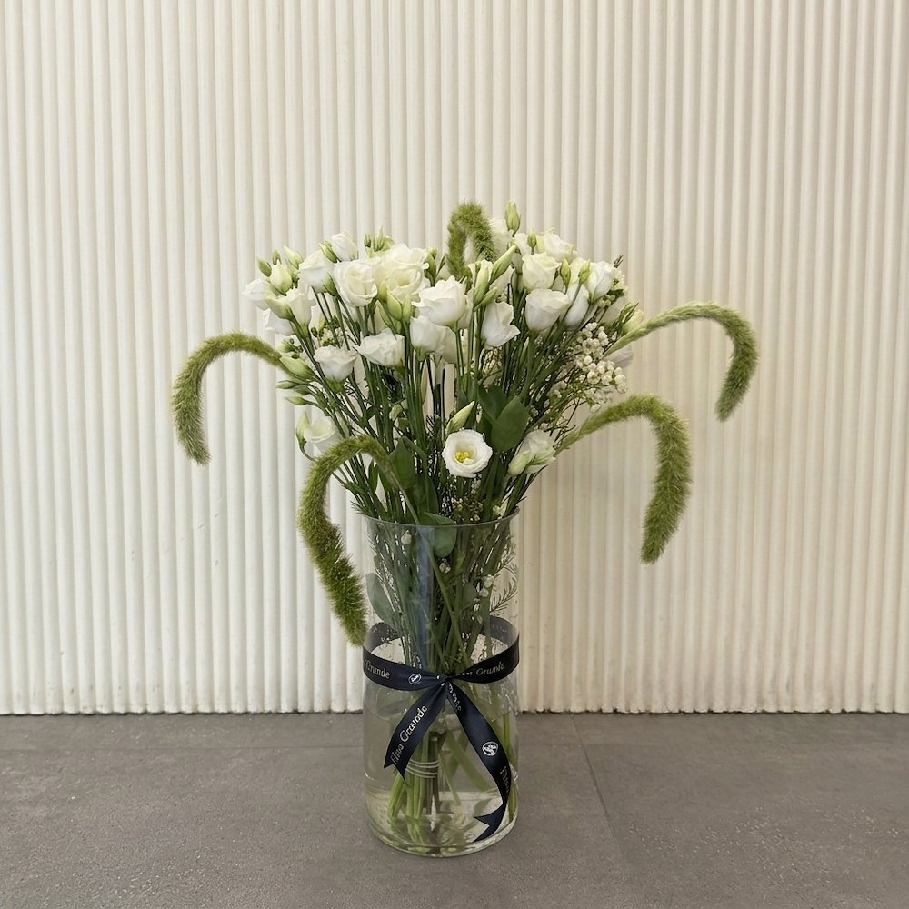 فازة انيقة تحتوي على الليزيانثوس.