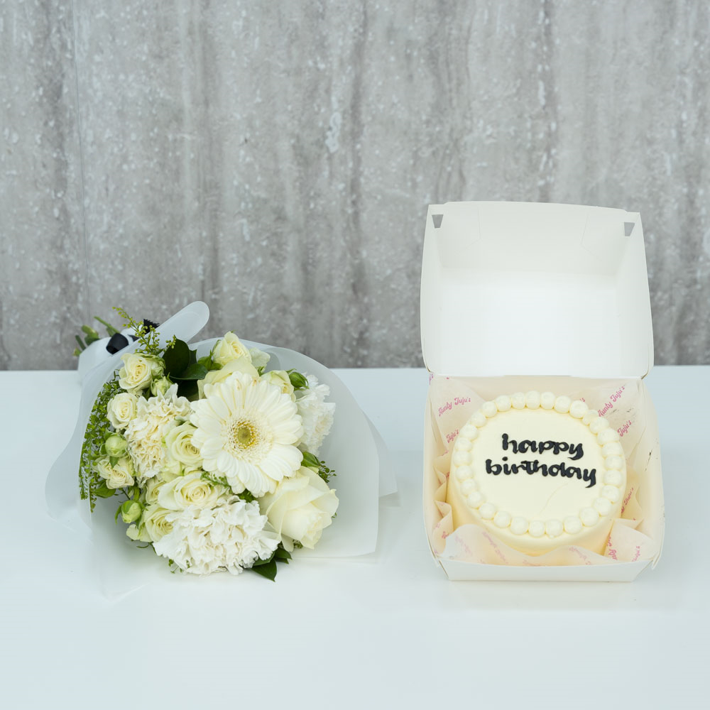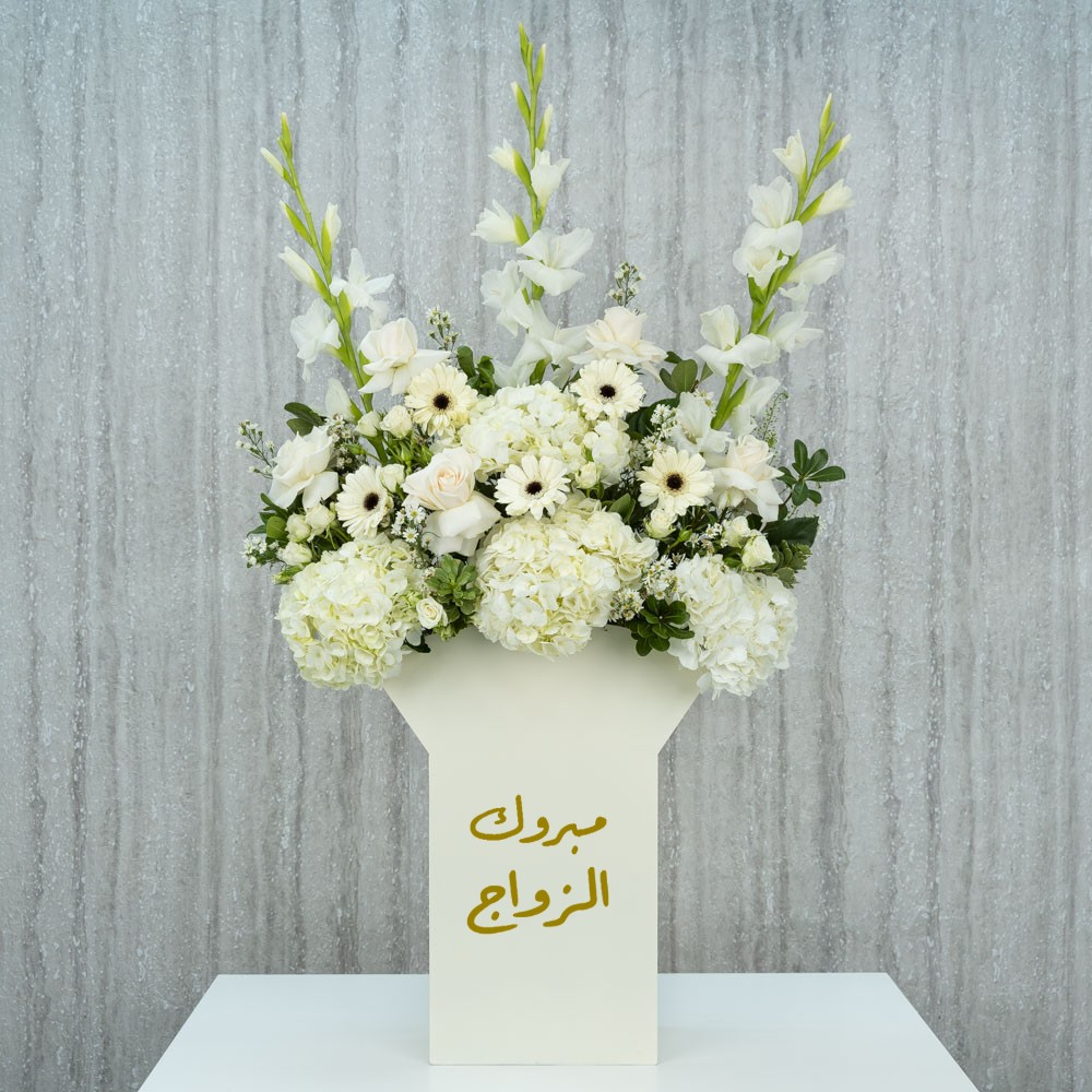 هذه الباقة تحتوي على زهور الجوري، البيبي جوري، الهايدرينجا، الكارنيشن والألستروميريا.